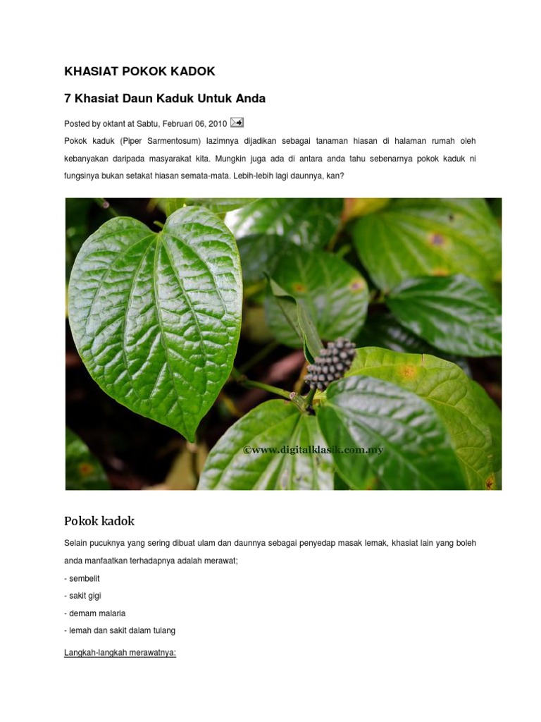 Tunjang Herba Daun Pokok Kaduk 7 Khasiat Daun Kaduk Selain Pucuknya Yang Sering Dibuat Ulam Dan Daunnya Sebagai Penyedap Masakan Lemak Khasiat Lain Yang Boleh Dimanafaatkan Terhadapnya Adalah Merawat Sembelit